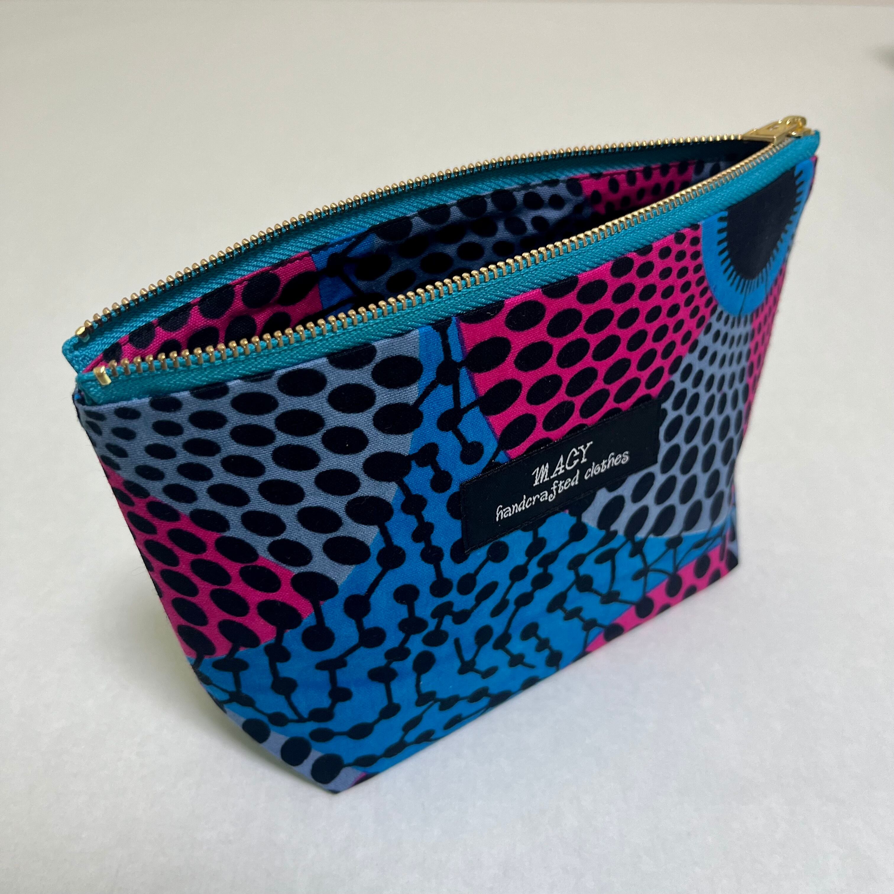 小さながらも存在感抜群のミニポーチ。アフリカ生地を使用し、丁寧にハンドメイドされた一点ものです。コンパクトながらも収納力バツグンで、カバンの中での整理整頓にぴったり。旅先や日常使いにも最適なサイズ感です。